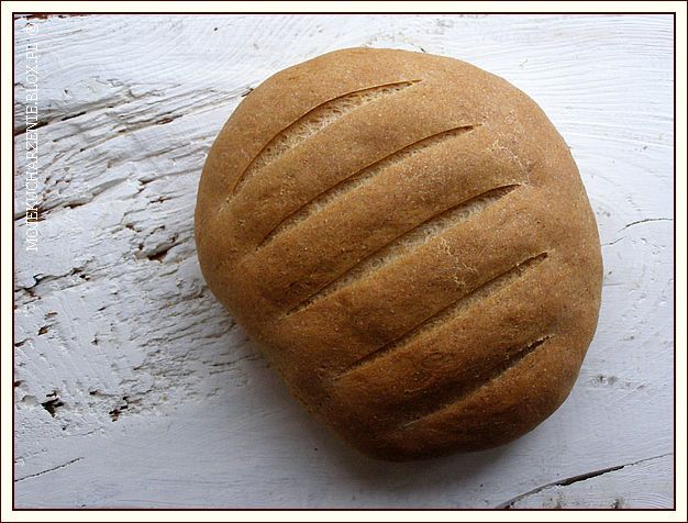 Wstawić do piekarnika nagrzanego do 190°C i piec przez ok.25-30 minut (aż chleb się zarumieni, a postukany od spodu wyda głuchy odgłos). [po 30 minutach pieczenia chlebki miały miękki spód, więc piekłam je jeszcze przez ok. 10 minut ułożone bezpośrednio na blasze].